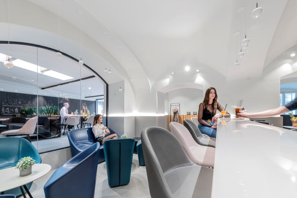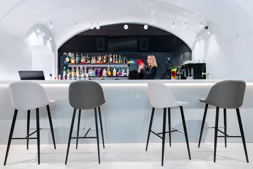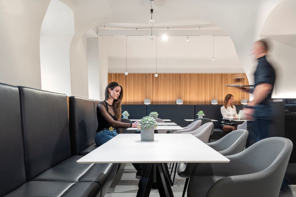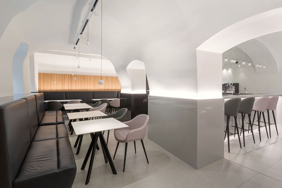 Klimatizovaná kaviareň je hlavný priestorom Tidly Café. Nefajčiarska zóna, ktorá dýcha sviežim minimalizmom a eleganciou. Kombinácia svetla, klenieb historickej budovy a jemných detailov vytvára prostredie, kde si naplno užijete chuť kávy aj stretnutie pri dobrom rozhovore.